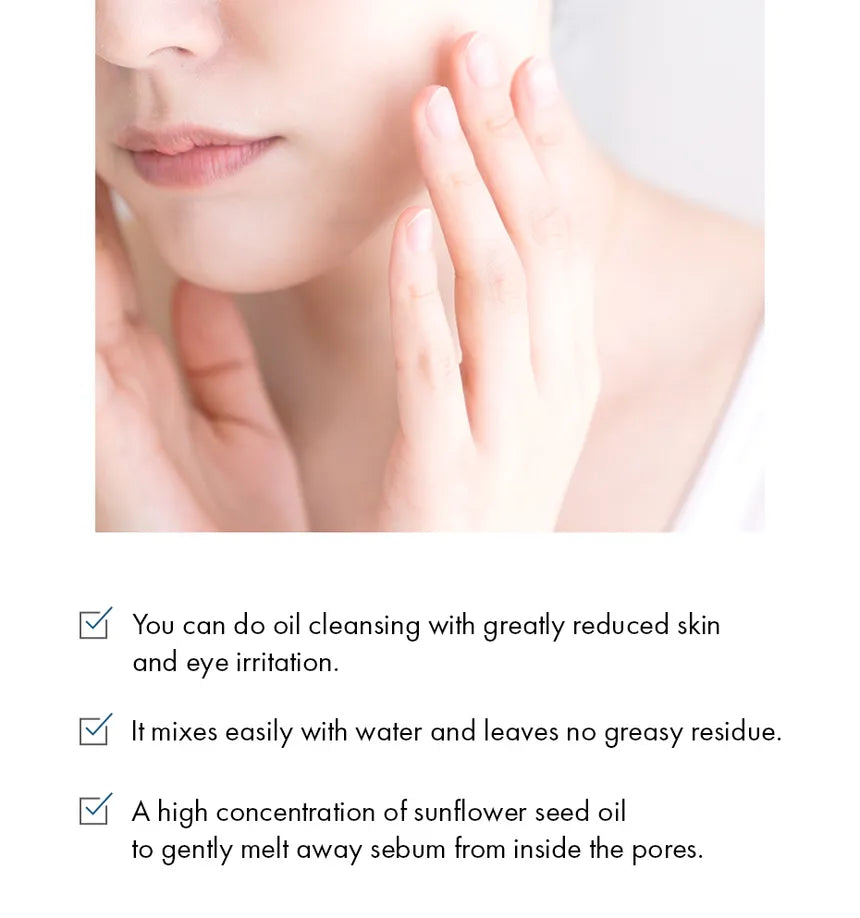 MILD OIL CLEANSER: Infused with skin-loving oils, this gentle cleanser removes impurities while leaving skin balanced and hydrated. Sunflower seed oil specifically helps dissolve blackheads and excess sebum without stripping the skin.