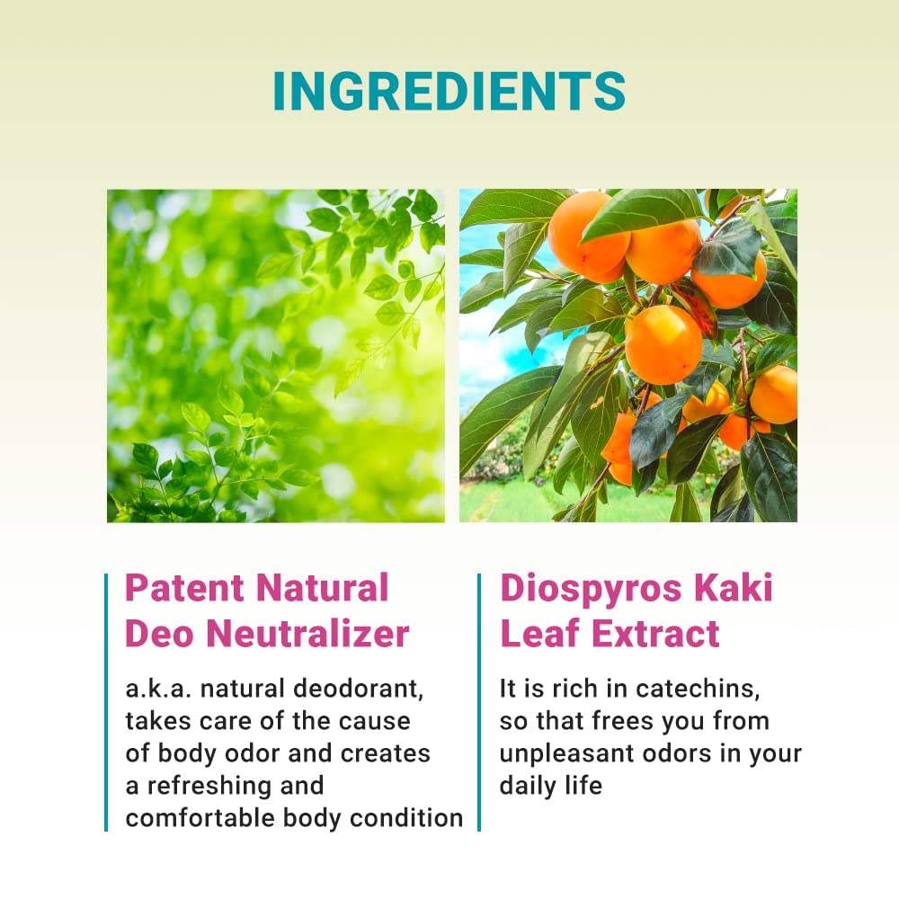 BODY ODOR CARE: Natural Deo Neutralizer targets odor at the source for a fresh feel. Diospyros Kaki Leaf Extract, rich in catechin, helps eliminate unpleasant smells and keeps your body feeling clean.