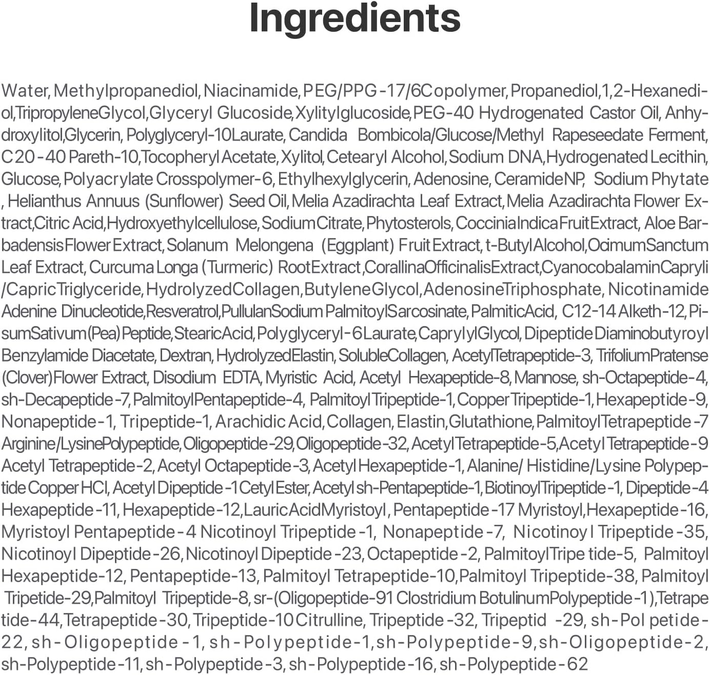 [KEY INGREDIENTS] Powered by NAD+, an anti-aging ingredient that boosts cell turnover, stimulates collagen production, and supports repair, along with 50 peptides to visibly firm and plump the skin. *The formula’s soft violet hue comes from Vitamin B12, while its natural pearlescence is derived from ceramides. Formulated with 1,000ppm of 100% pure salmon PDRN to restore a natural glow and even skin tone by strengthening the skin barrier and supporting overall skin health.