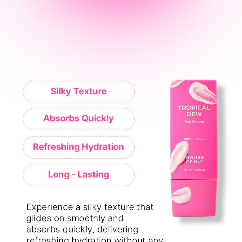 Tropical Dew Sun Cream features an ultra-light, silky formula that glides on effortlessly, leaving your skin dewy and hydrated. Infused with extracts from seven tropical fruits, it offers essential protection while enhancing your skin’s natural radiance.