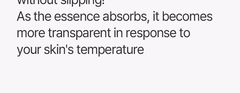 Highly Concentrated Essence Mask: Packed with 100% concentrated essence, this unique mask hardens into a transparent sheet as active ingredients are absorbed, effectively tightening pores and improving skin elasticity.