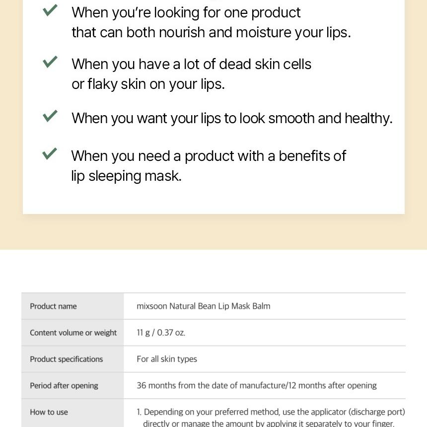 mixsoon Natural Bean Lip Mask Balm Lip Moisturizer 0.38 fl. oz. / 11g