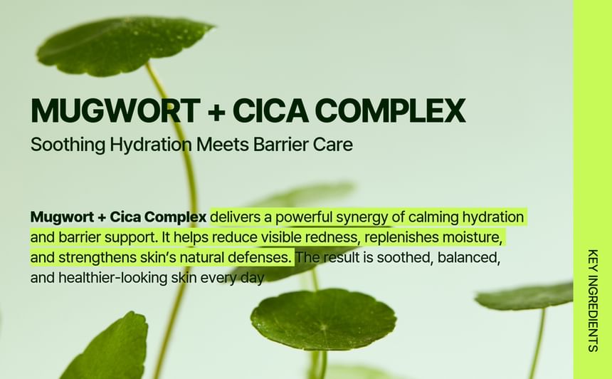 A vegan cleansing oil formulated with Mugwort and Centella Asiatica Extract to soothe irritation and reinforce skin barrier, while removing impurities and makeup without stripping skin.