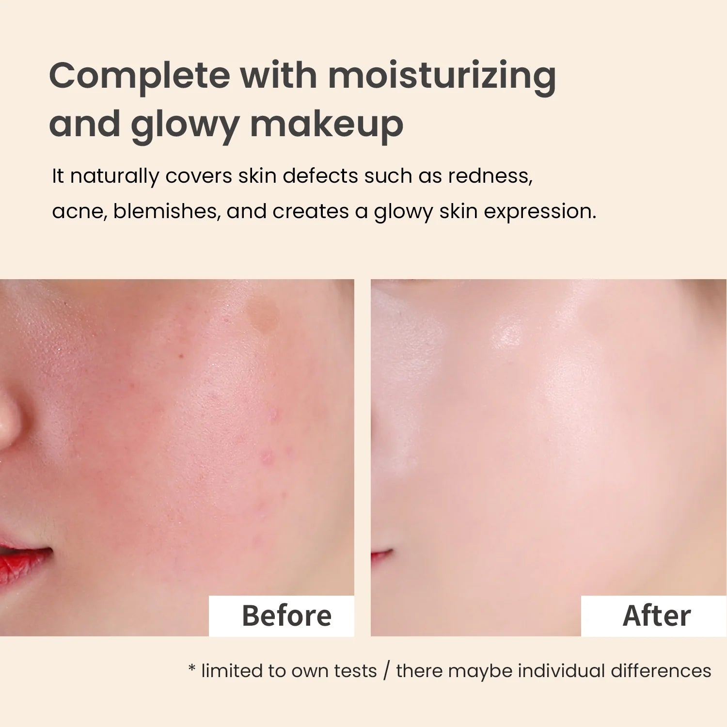 Seemingly effortless moistly covering cushion compact It forms a moisture-locking membrane that gets firmer the more it is padded, leaving skin smoother. ▶ Naturally moist and glowing cover √ Of a firm, sticky cushion texture with a moisture packing system full of moist glow, it naturally and smoothly covers skin blemishes. ▶ Bright skin tone without darkening even if re-applied √ Even if repeatedly applied several times, it gets lightly absorbed without darkening, leaving skin bright and clear all day long. ▶ Formula that protects skin from a harmful environment √ Thyme flower, mint leaf, rosehip fruit, and other compounds form a thin moisture-locking membrane that protects skin from harmful matter like minute dust in the air.