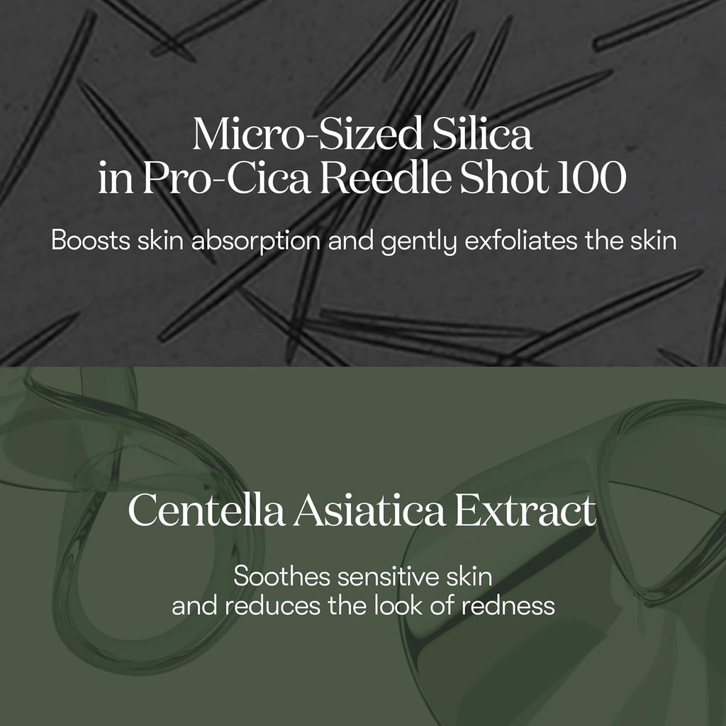 Start with the Pro Cica Reedle Shot 100 to deliver a concentrated dose of soothing ingredients that prepare your skin for the mask.