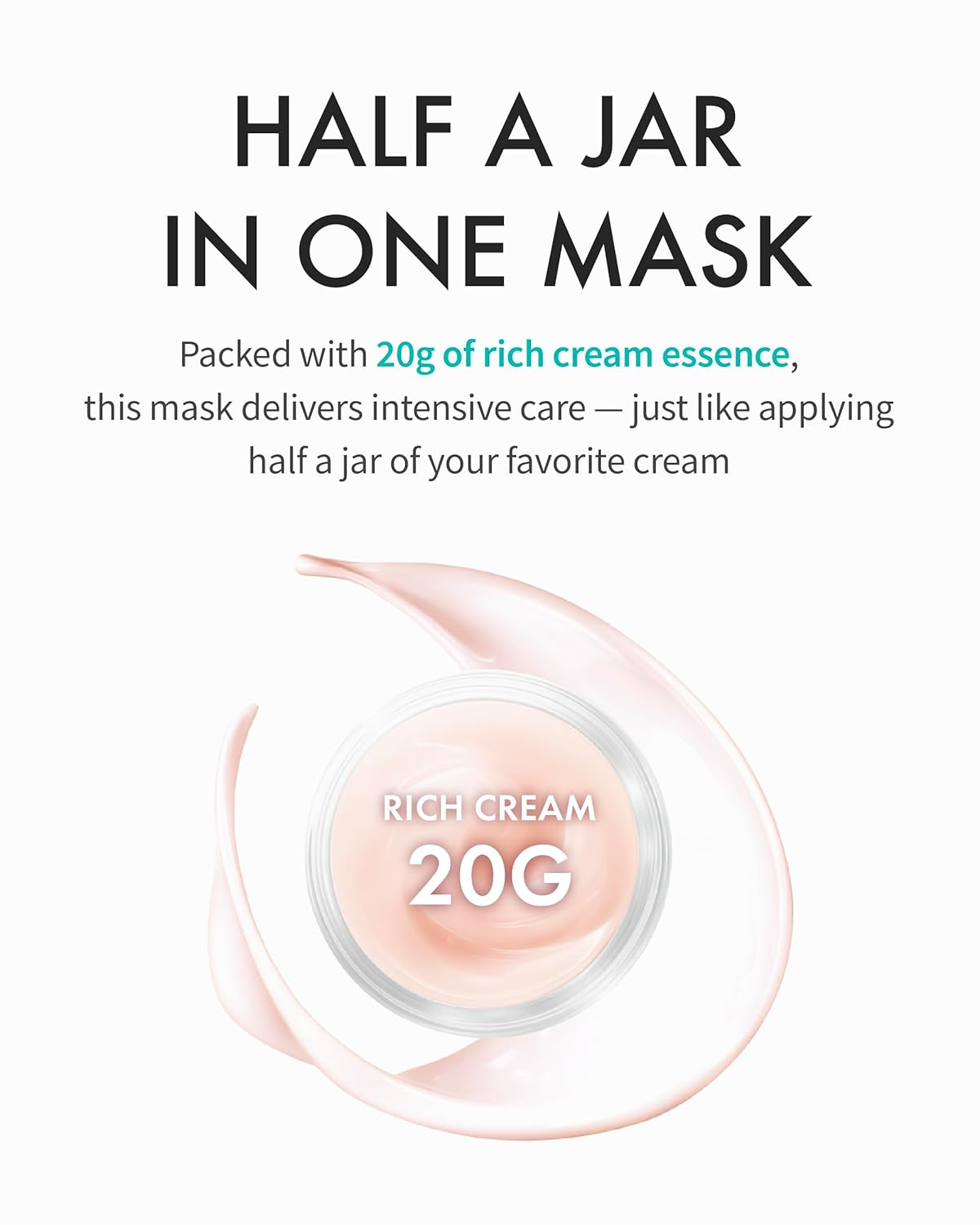 • HALF-A-JAR OF HEALING CREAM IN EVERY MASK: Each mask delivers 20g of concentrated, occlusive cream—equivalent to half a jar—to deeply hydrate, improve elasticity, and fortify the skin’s barrier. Locks in active ingredients for long-lasting results.