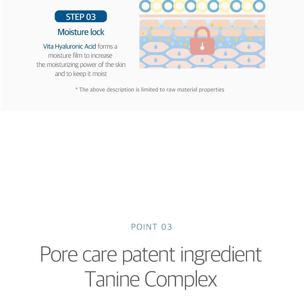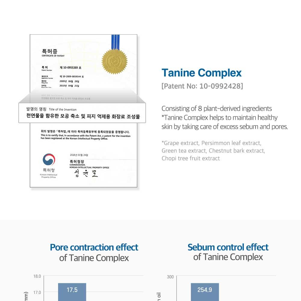 Contains birch tree sap ingredient and patent ingredient Tanine Complex to hydrate skin and provide pore and sebum care effect.
