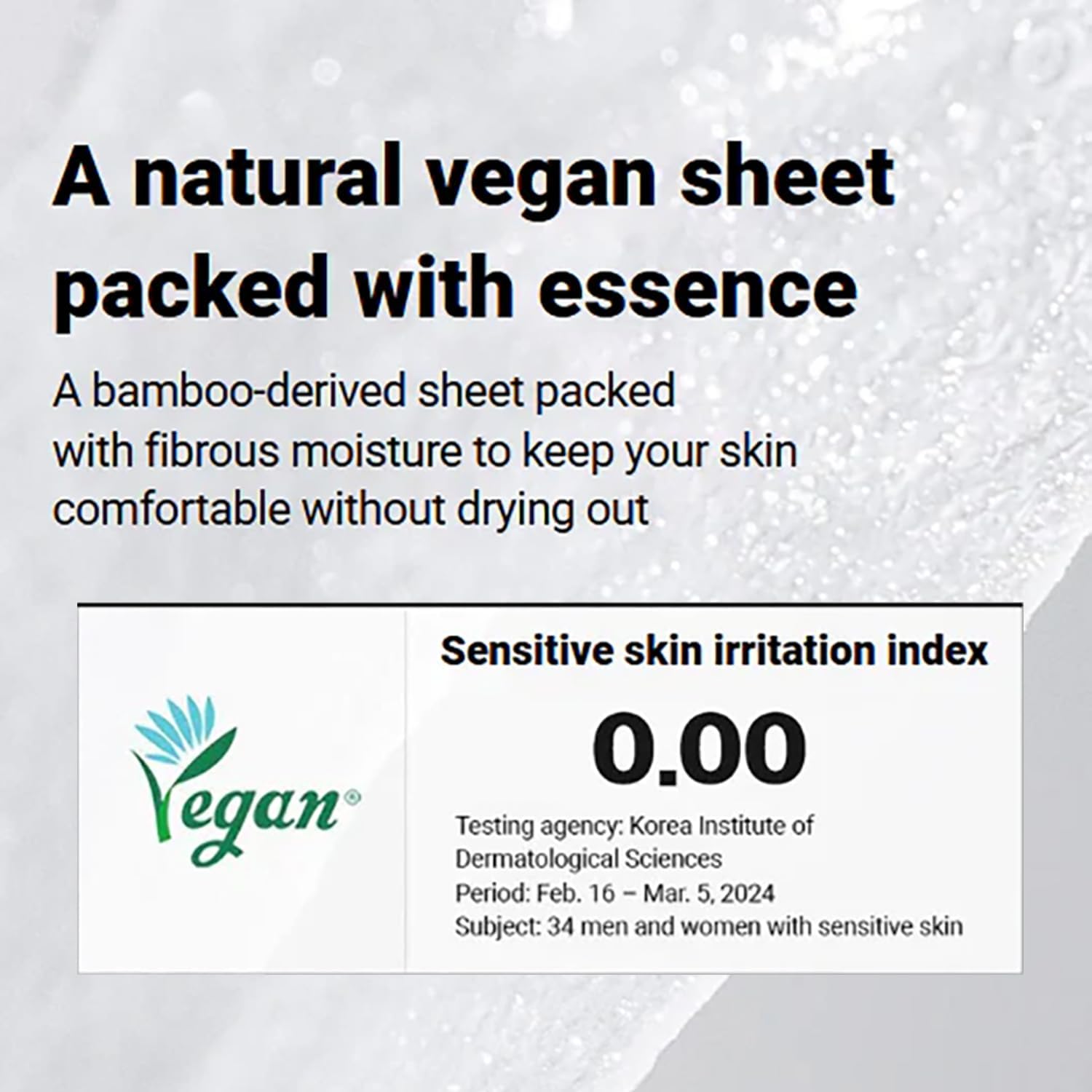 BIODEGRADABLE SHEET - This VEGAN certified, eco-friendly sheet is silky soft and firmly hugs skin for optimal absorption of our powerful essence. Enhanced mask shape comfortably fits all face shapes. Tested and safe for sensitive skin.