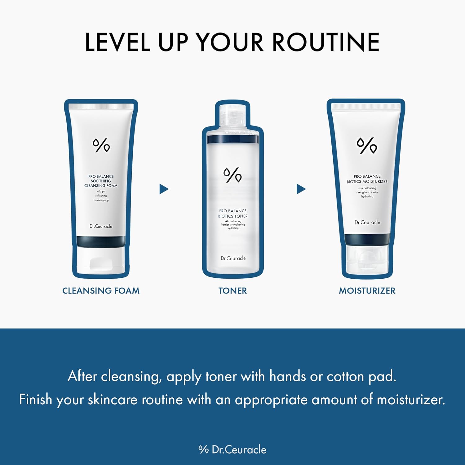 PRO BALANCE MOISTURE BARRIER SET: Dr.Ceuracle Pro Balance Soothing Cleansing Foam (150 ml / 5.07 fl. oz.) + Dr.Ceuracle Pro Balance Biotics Toner (300 ml / 10.14 fl. oz.) + Dr.Ceuracle Pro Balance Biotics Moisturizer (100 ml / 3.38 fl. oz.)